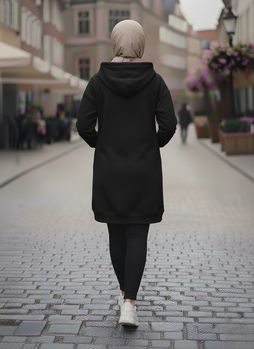 Women’s Long Hoodie – Premium Fleece, Full Sleeves Black